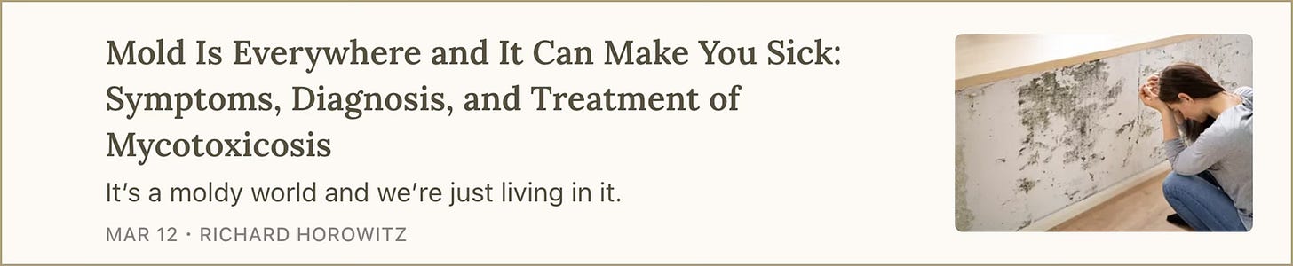 Notice ‘the elderly or children’ can have more severe reactions. So if you are one of the patients affected, I would consider speaking to your physician about getting a mold test from RealTime Laboratory. The testing and treatment protocols are listed in my prior Medical Detective Substack: