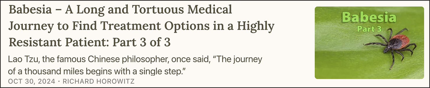 I am happy to speak to any treating Canadian physicians who have questions in an order to help these patients recover their health. I do have a consultation model, but be clear, I am not writing this Substack for that purpose. I don’t need or want more work! This Substack was written so patients can get help without using my consultation model! There is no charge for short questions, only extensive review of records and helping with diagnostic and treatment protocols.