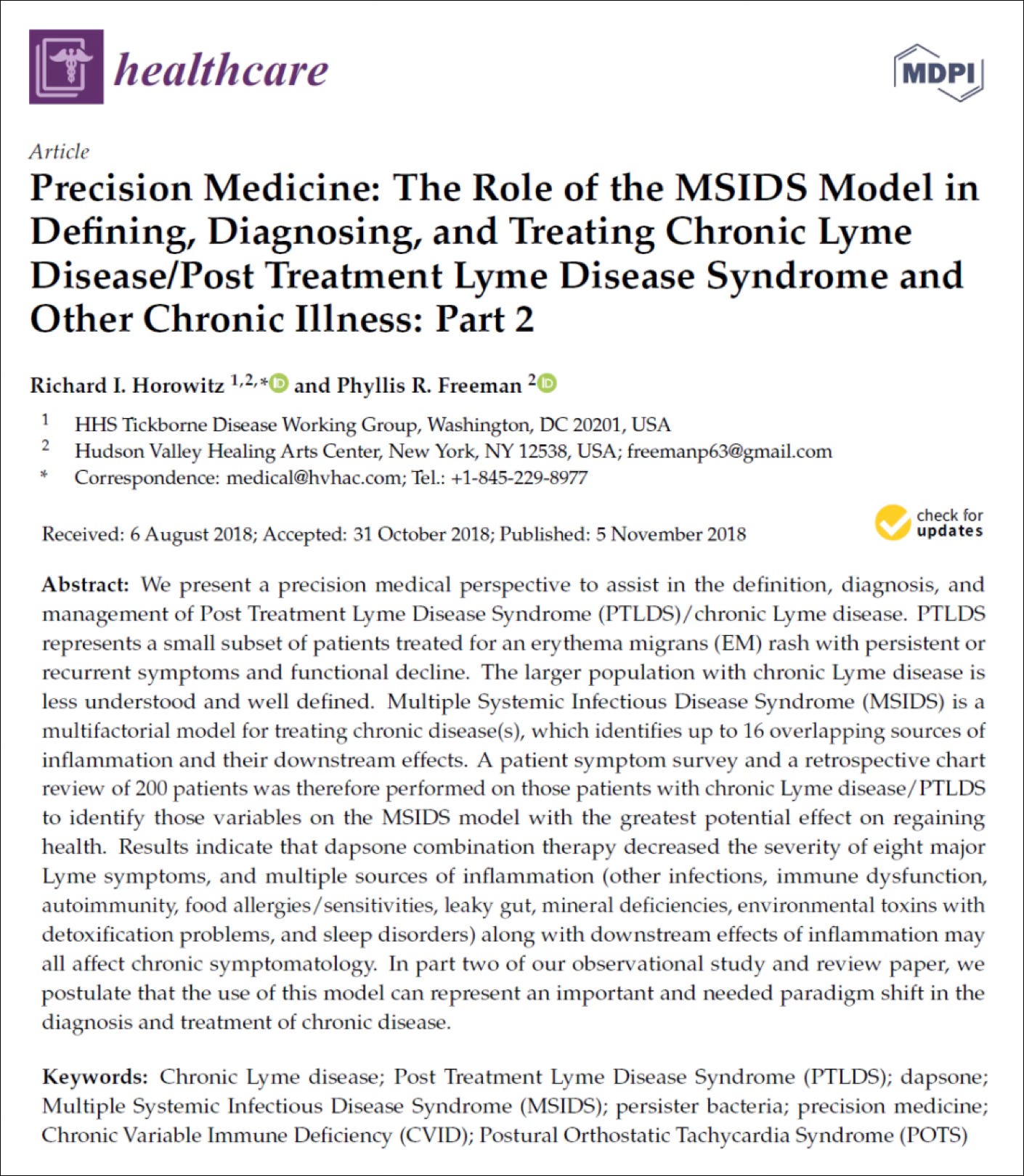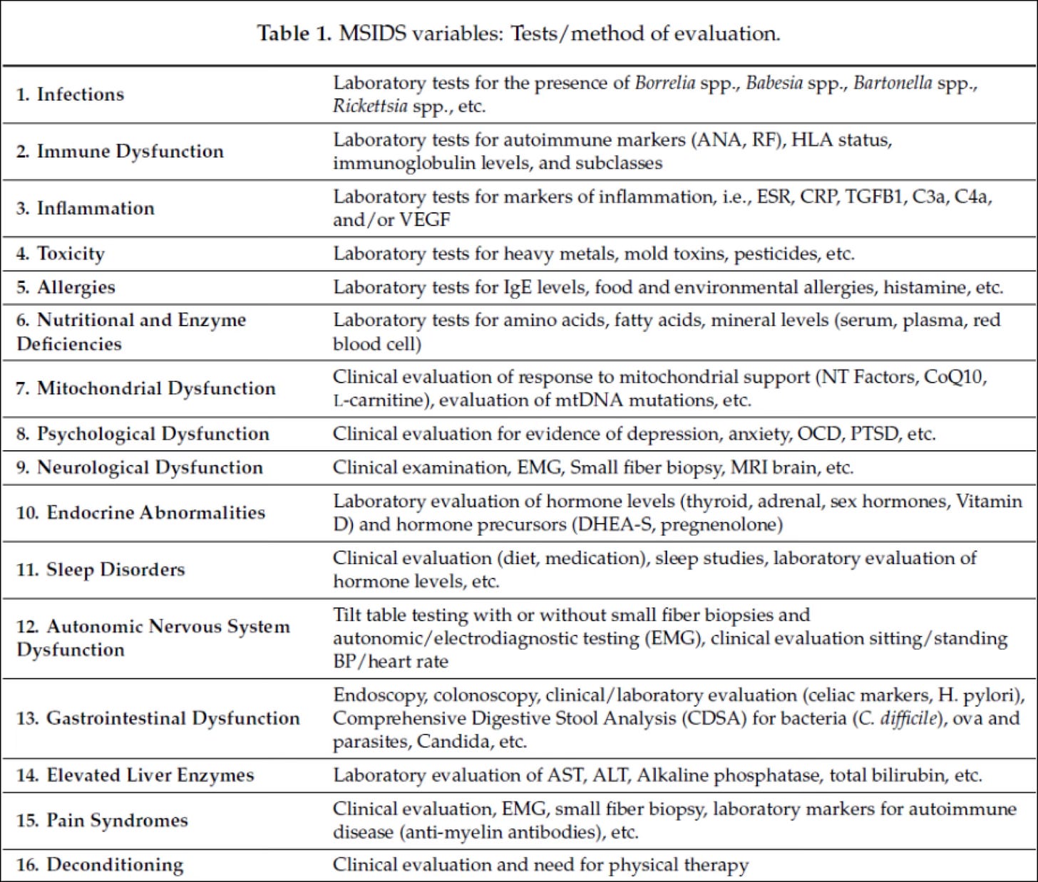 From: Citera M, Freeman PR, Horowitz RI. Empirical validation of the Horowitz Multiple Systemic Infectious Disease Syndrome Questionnaire for suspected Lyme disease. Int J Gen Med. 2017 Sep 4;10:249-273. doi: 10.2147/IJGM.S140224. PMID: 28919803; PMCID: PMC5590688. https://pubmed.ncbi.nlm.nih.gov/28919803/