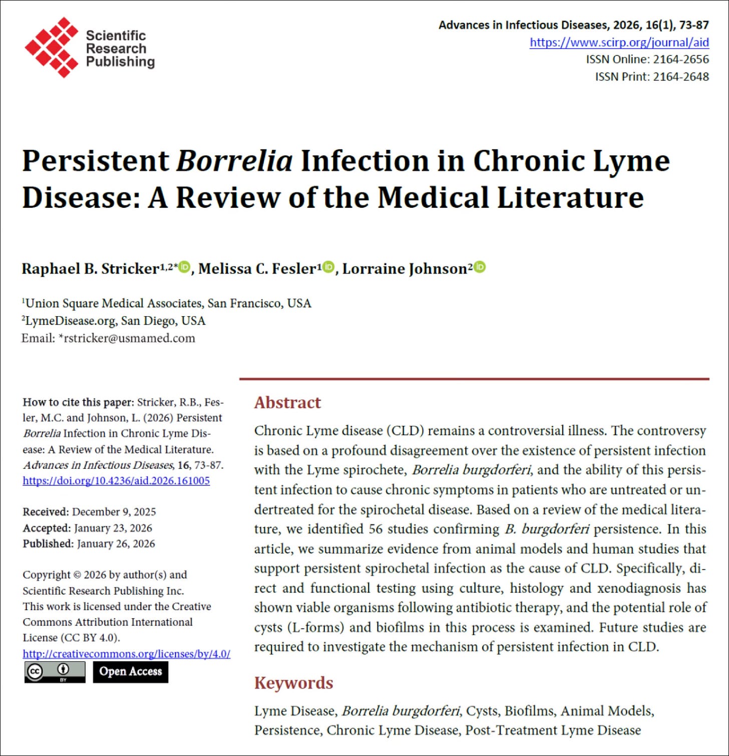 • Sapi, E. et al. The Long-Term Persistence of Borrelia burgdorferi Antigens and DNA in the Tissues of a Patient with Lyme Disease. Antibiotics 2019, 8, 183; doi:10.3390/antibiotics8040183