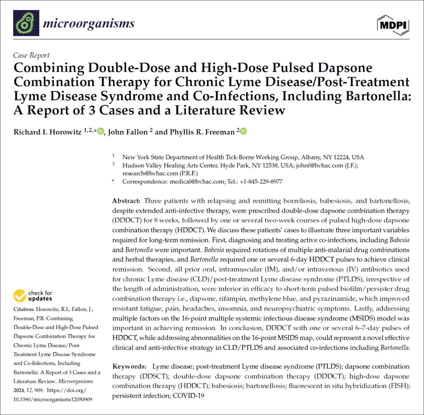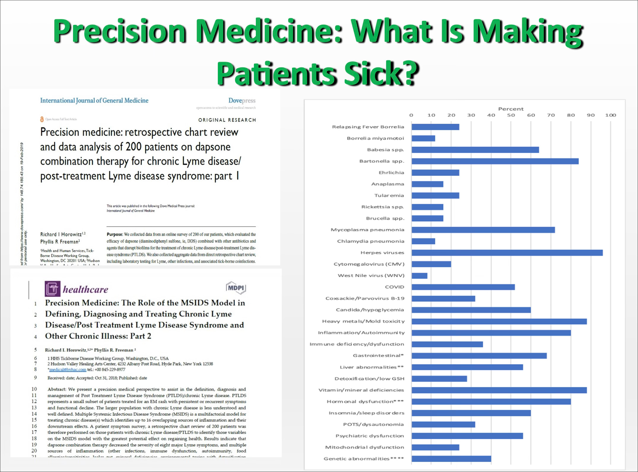 Horowitz, R.I.; Freeman, P.R. Precision Medicine: The Role of the MSIDS Model in Defining, Diagnosing, and Treating Chronic Lyme Disease/Post Treatment Lyme Disease Syndrome and Other Chronic Illness: Part 2. Healthcare 2018, 6, 129.