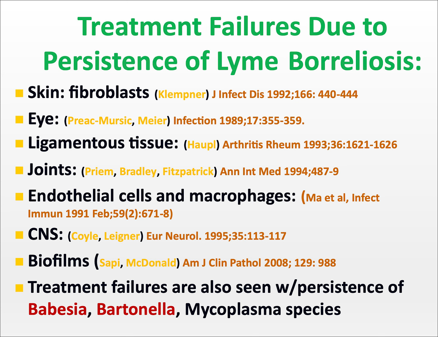 • Bradley JF,et al, The Persistence of Spirochetal Nucleic Acids in Active Lyme Arthritis. Ann Int Med 1994;487-9