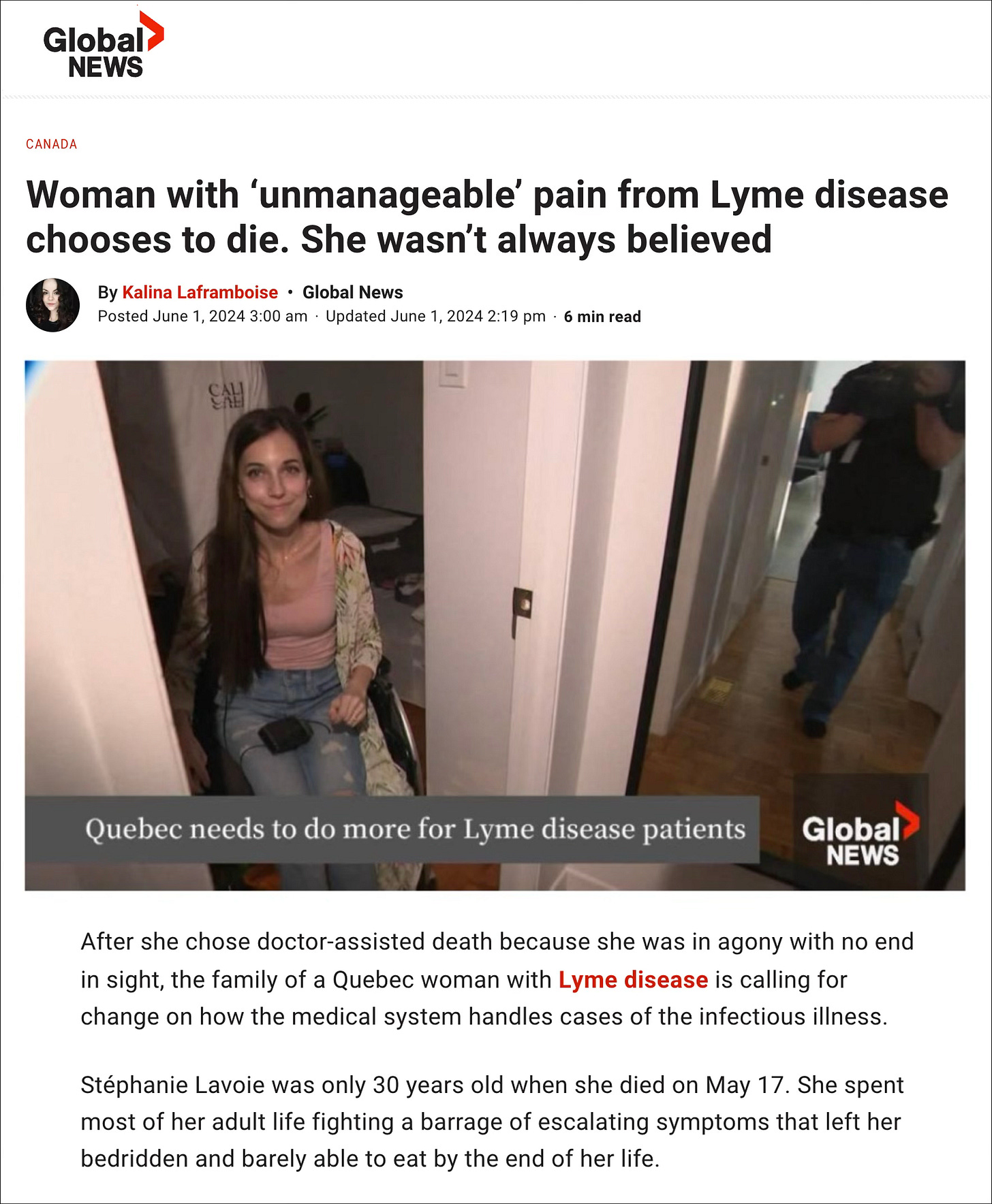 There was a high-profile case in Quebec a few years back about a young woman who suffered with chronic Lyme disease. She couldn’t get help and chose medical assistance in dying. See below: