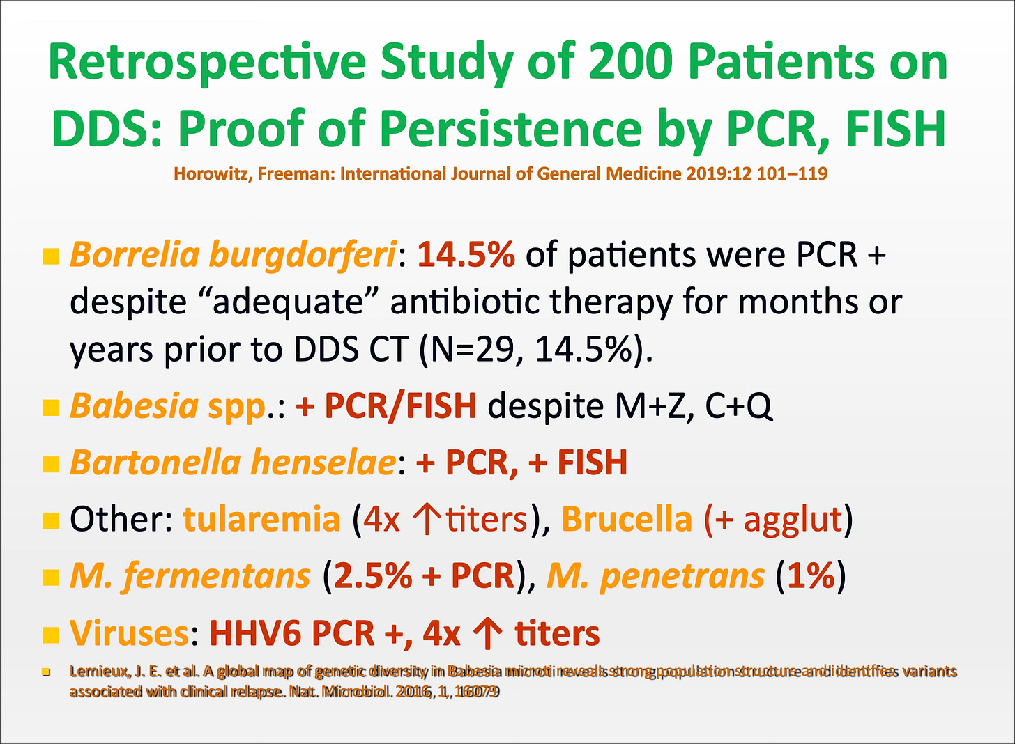 The peer reviewed medical literature shows chronic persistent infection despite intensive antibiotics. This is from our own list of references which we have referred to over the years:
